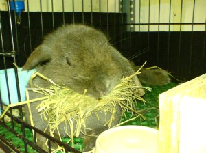 I woke up this morning expecting to see some kits in the nest box I have given Noobie since Sunday. I was told that she was placed together with a solid choc buck named Yuba from 9/3/08 till 15/3/08. Whether she was successfully bred or not depends on whether she kindles in these few days. Unfortunately instead of building a nest, she soiled it with her pee.
